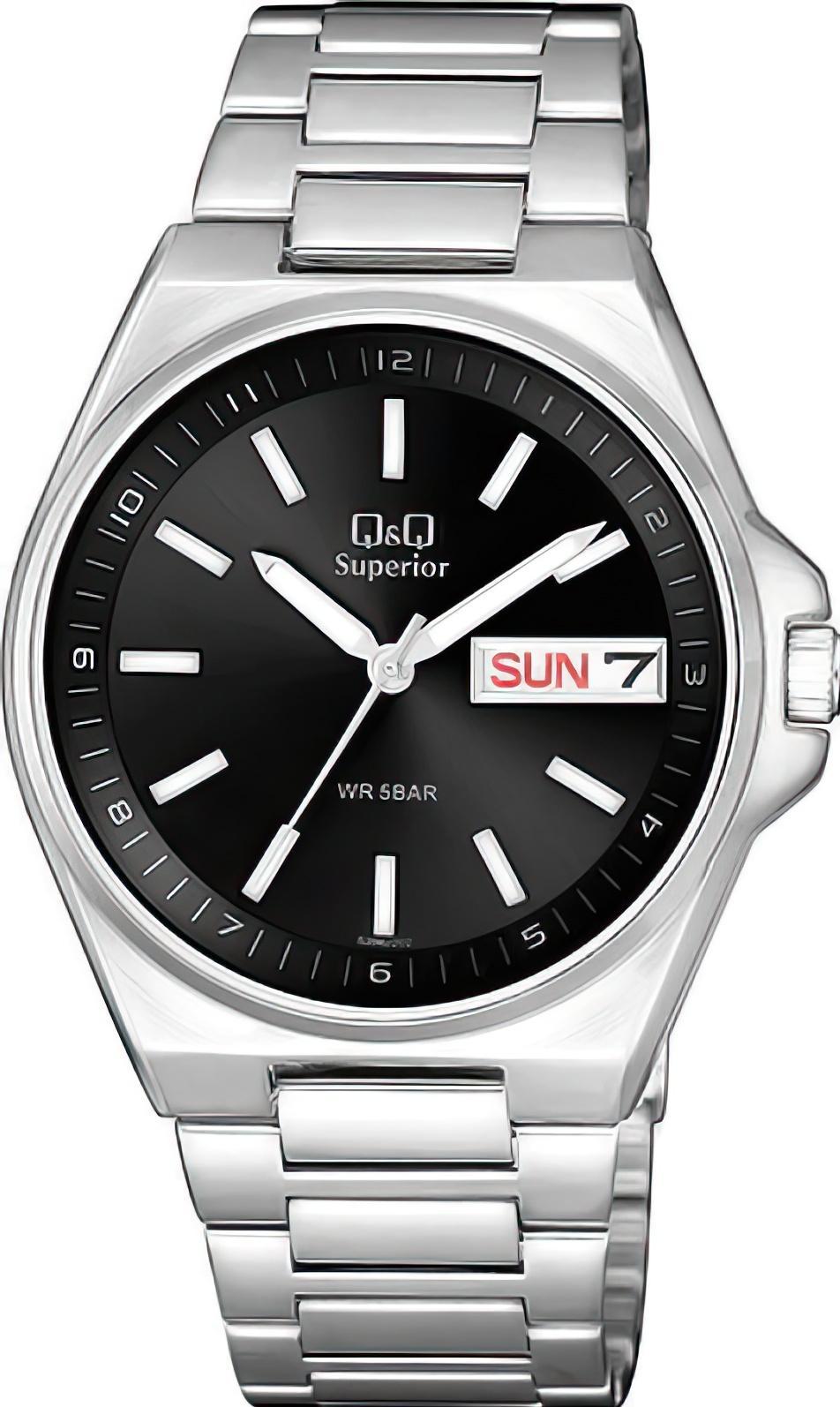 Мужские наручные часы Q&Q Attractive Women S396J202Y. Точный кварцевый механизм с аналоговой индикацией. Корпус изготовлен из высококачественной нержавеющей стали 316L с высокими антикоррозийными свойствами. На стрелки и отметки нанесен светонакопительный состав, благодаря этому считывать информацию с циферблата возможно и в темноте. На циферблате отображается текущее число месяца и день недели. Браслет из нержавеющей стали. Прочное, устойчивое к царапинам минеральное стекло защищает часы от повреждений. Часы являются водонепроницаемыми до 5 Бар. Цвет корпуса: Серебристый. Цвет циферблата: Черный. Ширина (с заводной головкой): 40мм. Толщина: 9мм. Гарантия: 1 год.