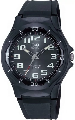 Мужские наручные часы Q&Q Attractive Women VP58J002Y. Точный кварцевый механизм с аналоговой индикацией. Полимерный корпус надежно защищает часы от механических повреждений. На стрелки и отметки нанесен светонакопительный состав, благодаря этому считывать информацию с циферблата возможно и в темноте. Полимерный ремешок. Натуральный полимерный материал является идеальным для изготовления ремешка благодаря своей чрезвычайной прочности и гибкости. Органическое стекло. Часы являются водонепроницаемыми до 10 Бар. Цвет корпуса: Черный. Цвет циферблата: Черный. Ширина (с заводной головкой): 42мм. Толщина: 12мм. Гарантия: 1 год.