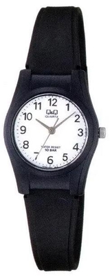 <b>Женские наручные часы Q&Q Attractive Women VQ03J004Y.</b> Точный кварцевый механизм. Полимерный корпус надежно защищает часы от механических повреждений. На стрелки и отметки нанесен светонакопительный состав, благодаря этому считывать информацию с циферблата возможно и в темноте. Полимерный ремешок. Натуральный полимерный материал является идеальным для изготовления ремешка благодаря своей чрезвычайной прочности и гибкости. Прочное, устойчивое к царапинам минеральное стекло защищает часы от повреждений.Часы являются водонепроницаемыми до 10 Бар. Цвет корпуса: Черный. Ширина (с заводной головкой): 34мм. Толщина: 10мм. Гарантия: 1 год.