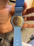 Электронные часы с точность хода не хуже -10 +15 сек./в месяц. • Ежедневный будильник со звуковым сигналом. • Секундомер. • Таймер обратного отсчета. • Автоматический календарь. • Электрическая подсветка - для освещения циферблата используется светодиод. • Минеральное стекло устойчивое к возникновению царапин. • Надёжный корпус из прочного и лёгкого пластика. • Синий каучуковый ремешок. • Водозащита до 10 АТМ. • Диаметр корпуса 38 мм, толщина 11 мм. Вес 47 гр.