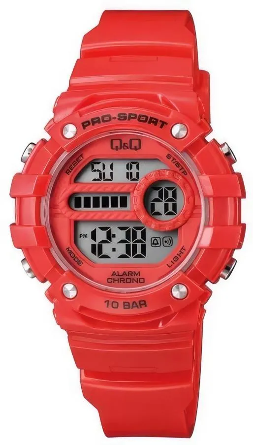<b>Мужские наручные часы Q&Q M154J004Y.</b> Точный кварцевый механизм с цифровой индикацией. Полимерный корпус надежно защищает часы от механических повреждений. На циферблате отображается текущее число, месяц и день недели. Полимерный ремешок. Натуральный полимерный материал является идеальным для изготовления ремешка благодаря своей чрезвычайной прочности и гибкости. Органическое стекло. Часы являются водонепроницаемыми до 10 Бар. Цвет корпуса: Красный. Гарантия: 1 год.