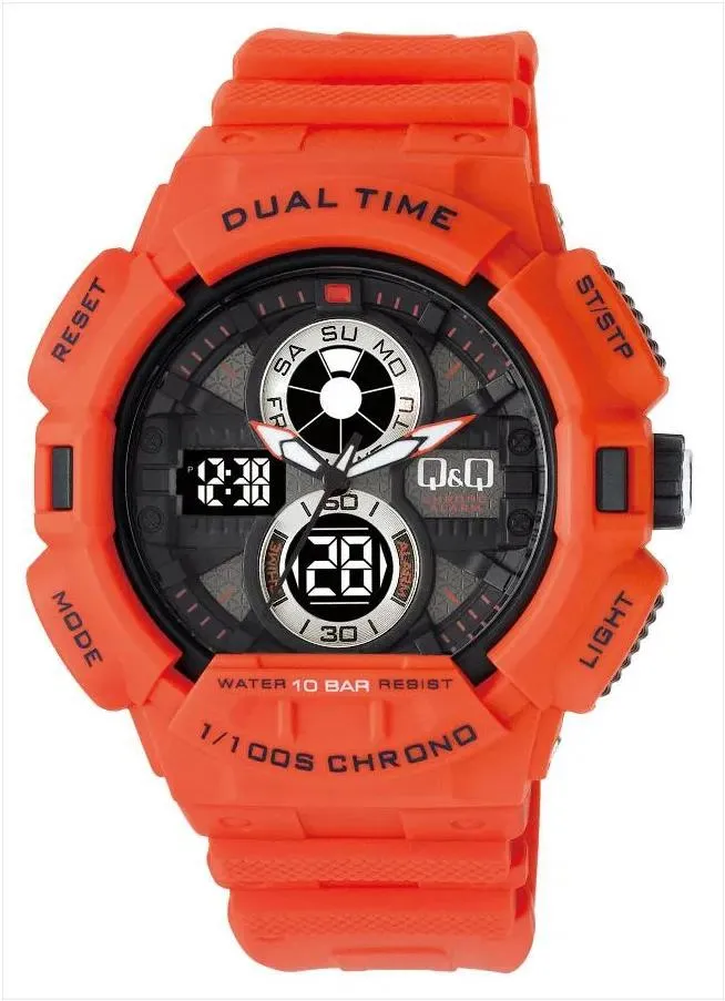 <b>Мужские наручные часы Q&Q  GW81J005Y.</b> Точный кварцевый механизм с аналого-цифровой индикацией. Полимерный корпус надежно защищает часы от механических повреждений. На циферблате отображается текущее число, месяц и день недели. Полимерный ремешок. Натуральный полимерный материал является идеальным для изготовления ремешка благодаря своей чрезвычайной прочности и гибкости. Прочное, устойчивое к царапинам минеральное стекло защищает часы от повреждений.Часы являются водонепроницаемыми до 10 Бар. Цвет корпуса: Серый. Ширина (с заводной головкой): 50мм. Гарантия: 1 год.