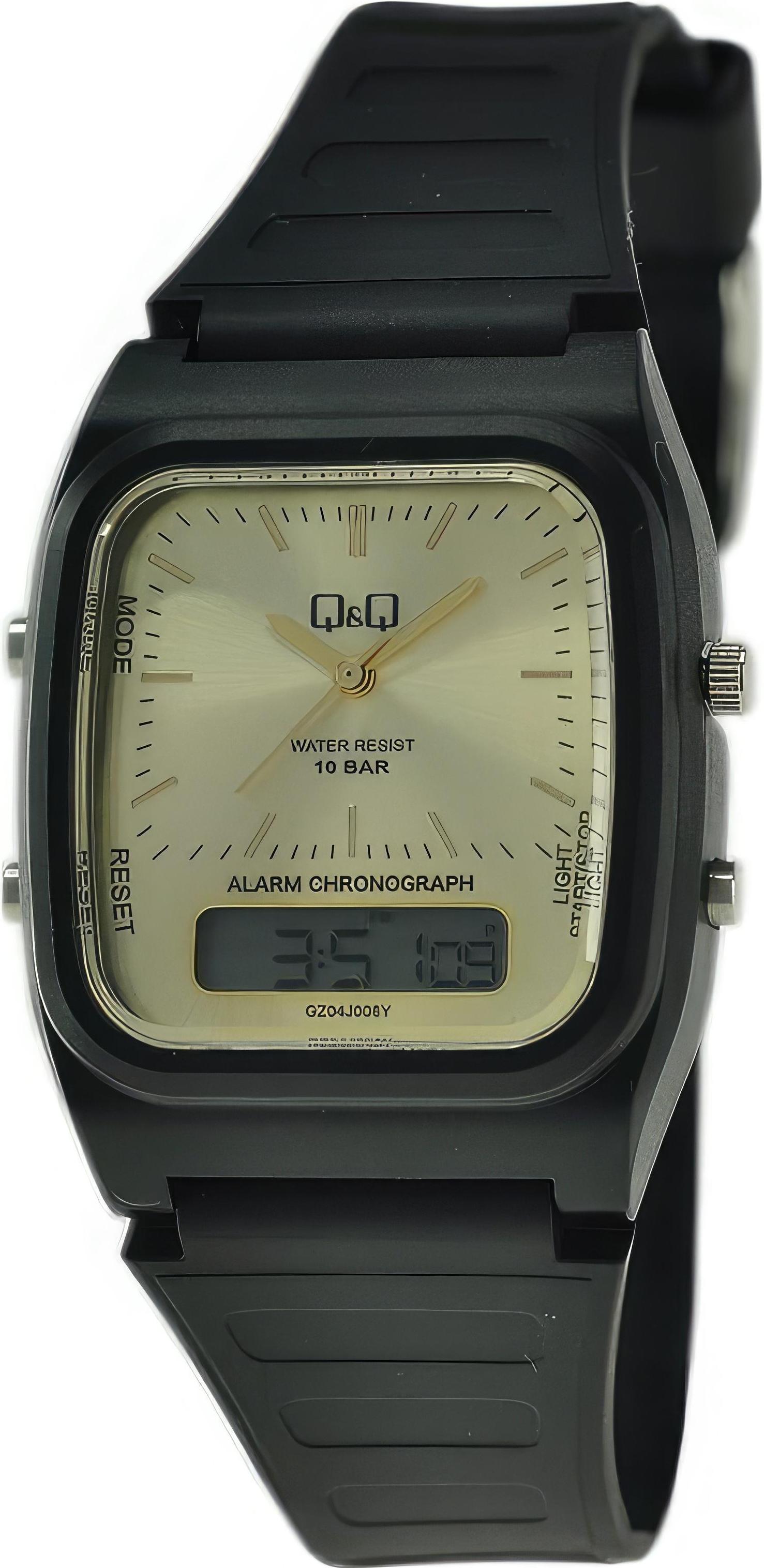 Мужские наручные часы Q&Q GZ04J008Y. Точный кварцевый механизм с аналого-цифровой индикацией. Полимерный корпус надежно защищает часы от механических повреждений. Светодиодная подсветка. На циферблате отображается текущее число, месяц и день недели. Полимерный ремешок. Натуральный полимерный материал является идеальным для изготовления ремешка благодаря своей чрезвычайной прочности и гибкости. Прочное, устойчивое к царапинам минеральное стекло защищает часы от повреждений.Часы являются водонепроницаемыми до 10 Бар. Цвет корпуса: Черный. Цвет циферблата: Коричневый. Ширина (с заводной головкой): 54мм. Гарантия: 1 год.