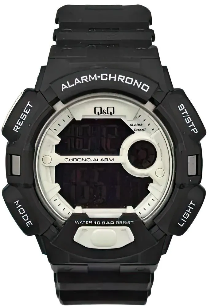 <b>Мужские наручные часы Q&Q M132J009Y.</b> Точный кварцевый механизм с цифровой индикацией. Полимерный корпус надежно защищает часы от механических повреждений. Светодиодная подсветка. На циферблате отображается текущее число, месяц и день недели. Полимерный ремешок. Натуральный полимерный материал является идеальным для изготовления ремешка благодаря своей чрезвычайной прочности и гибкости. Прочное, устойчивое к царапинам минеральное стекло защищает часы от повреждений.Часы являются водонепроницаемыми до 10 Бар. Цвет корпуса: Черный. Цвет циферблата: Черный. Ширина (с заводной головкой): 54мм. Гарантия: 1 год.