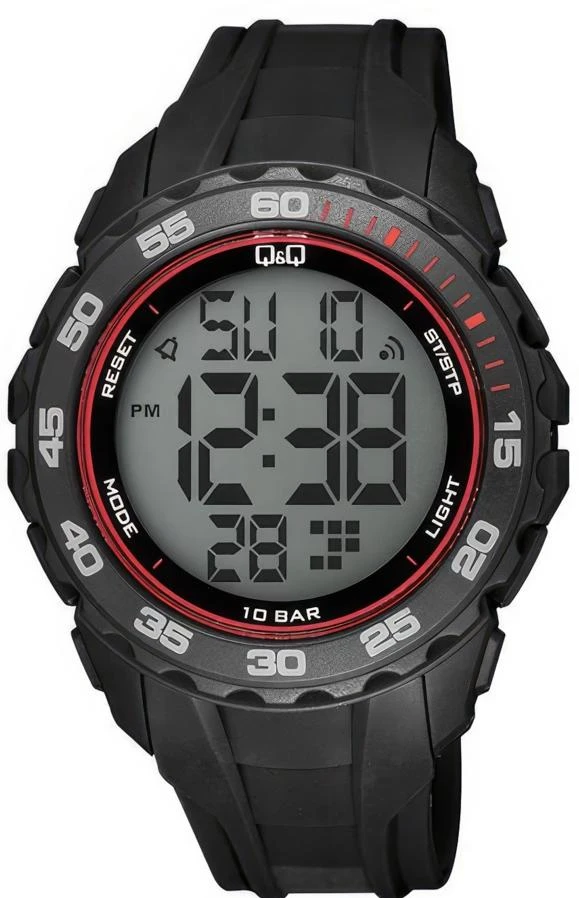 Мужские наручные часы Q&Q Digital G06AJ003Y. Точный кварцевый механизм с цифровой индикацей. Полимерный ремешок. Натуральный полимерный материал является идеальным для изготовления ремешка благодаря своей чрезвычайной прочности и гибкости. Функция будильника. Функция хронографа. Функция таймера. Таймеры обратного отсчета напомнят Вам о текущих или особенных событиях, издав звуковой сигнал в установленное время. Отображение времени возможно в 12-часовом или 24-часовом формате. Полимерный ремешок. Натуральный полимерный материал является идеальным для изготовления ремешка благодаря своей чрезвычайной прочности и гибкости. Органическое стекло. На циферблате отображается текущее число, месяц и день недели. Часы являются водонепроницаемыми до 10 Бар. Цвет циферблата: Красный. Цвет циферблата: Черный. Цвет корпуса: Черный. Светодиодная подсветка. Толщина: 12 мм. Гарантия: 1 год.