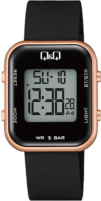 Мужские наручные часы Q&Q Digital M207J004Y. Точный кварцевый механизм с цифровой индикацей. Полимерный ремешок. Натуральный полимерный материал является идеальным для изготовления ремешка благодаря своей чрезвычайной прочности и гибкости. Функция будильника. Функция хронографа. Функция таймера. Таймеры обратного отсчета напомнят Вам о текущих или особенных событиях, издав звуковой сигнал в установленное время. Отображение времени возможно в 12-часовом или 24-часовом формате. Латунный браслет. Прочное, устойчивое к царапинам минеральное стекло защищает часы от повреждений. На циферблате отображается текущее число, месяц и день недели. Часы являются водонепроницаемыми до 5 Бар. Цвет циферблата: Розовое золото. Цвет корпуса: Черный. Светодиодная подсветка. Толщина: 10 мм. Гарантия: 1 год.