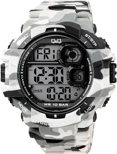 Электронные часы с точность хода не хуже -10 +15 сек./в месяц. • Ежедневный будильник со звуковым сигналом. • Секундомер. • Таймер обратного отсчета. • Автоматический календарь. • Электрическая подсветка - для освещения циферблата используется светодиод. • Минеральное стекло устойчивое к возникновению царапин. • Надёжный корпус из прочного и лёгкого пластика. • Серый каучуковый ремешок. • Водозащита до 10 АТМ. • Диаметр корпуса 45 мм, толщина 14 мм. Вес 58 гр.