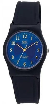 <b>Детские наручные часы Q&Q VP34J001Y.</b> Точный кварцевый механизм с аналоговой индикацией. Полимерный корпус надежно защищает часы от механических повреждений. Полимерный ремешок. Натуральный полимерный материал является идеальным для изготовления ремешка благодаря своей чрезвычайной прочности и гибкости. Прочное, устойчивое к царапинам минеральное стекло защищает часы от повреждений.Часы являются водонепроницаемыми до 10 Бар. Цвет корпуса: Желтое золото. Цвет циферблата: Золотистый. Ширина (с заводной головкой): 29мм. Гарантия: 1 год.