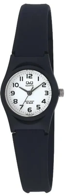 <b>Женские наручные часы Q&Q  VQ87J008Y.</b> Точный кварцевый механизм с аналоговой индикацией. Полимерный корпус надежно защищает часы от механических повреждений. Полимерный ремешок. Натуральный полимерный материал является идеальным для изготовления ремешка благодаря своей чрезвычайной прочности и гибкости. Органическое стекло. Часы являются водонепроницаемыми до 10 Бар. Цвет корпуса: Черный. Ширина (с заводной головкой): 39мм. Гарантия: 1 год.