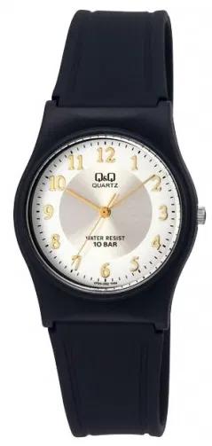 Детские наручные часы Q&Q  VP34J052Y. Точный кварцевый механизм с аналоговой индикацией. Полимерный корпус надежно защищает часы от механических повреждений. Полимерный ремешок. Натуральный полимерный материал является идеальным для изготовления ремешка благодаря своей чрезвычайной прочности и гибкости. Прочное, устойчивое к царапинам минеральное стекло защищает часы от повреждений.Часы являются водонепроницаемыми до 10 Бар. Цвет корпуса: Белый. Ширина (с заводной головкой): 33мм. Гарантия: 1 год.