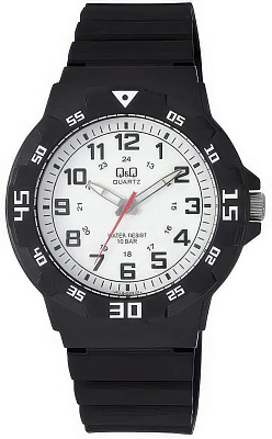 <b>Мужские наручные часы Q&Q VR18J002Y.</b> Точный кварцевый механизм с аналоговой индикацией. Полимерный корпус надежно защищает часы от механических повреждений. Полимерный ремешок. Натуральный полимерный материал является идеальным для изготовления ремешка благодаря своей чрезвычайной прочности и гибкости. Прочное, устойчивое к царапинам минеральное стекло защищает часы от повреждений.Часы являются водонепроницаемыми до 10 Бар. Цвет корпуса: Черный. Цвет циферблата: Черный. Ширина (с заводной головкой): 25мм. Гарантия: 1 год.