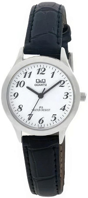 <b>Женские наручные часы Q&Q C153J304Y.</b> Точный кварцевый механизм с аналоговой индикацией. Корпус изготовлен из высококачественной часовой латуни с высокими антикоррозийными свойствами. Ремешок изготовлен из кожи. Прочное, устойчивое к царапинам минеральное стекло защищает часы от повреждений.Часы являются водонепроницаемыми до 3 Бар. Цвет корпуса: Серебристый. Цвет циферблата: Белый. Ширина (с заводной головкой): 30мм. Толщина: 9мм. Гарантия: 1 год.