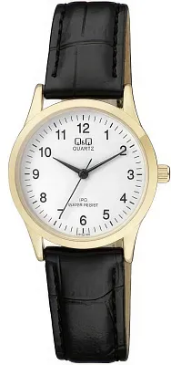 <b>Женские наручные часы Q&Q C213J104Y.</b> Точный кварцевый механизм с аналоговой индикацией. Корпус изготовлен из высококачественной часовой латуни с высокими антикоррозийными свойствами. Ремешок изготовлен из кожи. Прочное, устойчивое к царапинам минеральное стекло защищает часы от повреждений.Часы являются водонепроницаемыми до 3 Бар. Цвет корпуса: Белый. Цвет циферблата: Белый. Гарантия: 1 год.