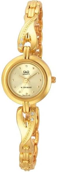 Женские наручные часы Q&Q F323J010Y. Точный кварцевый механизм с аналоговой индикацией. Корпус изготовлен из высококачественной нержавеющей стали 316L с высокими антикоррозийными свойствами. Браслет из нержавеющей стали. Прочное, устойчивое к царапинам минеральное стекло защищает часы от повреждений. Часы являются водонепроницаемыми до 3 Бар. Цвет корпуса: Желтое золото. Цвет циферблата: Золотистый. Гарантия: 1 год.