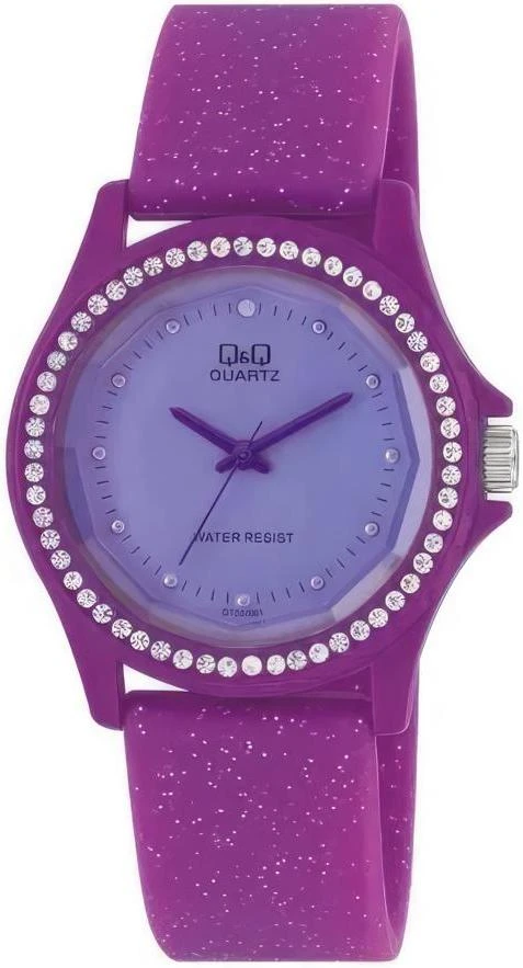 Женские наручные часы Q&Q GT23J001Y. Точный кварцевый механизм с аналоговой индикацией. Полимерный корпус надежно защищает часы от механических повреждений. Полимерный ремешок. Натуральный полимерный материал является идеальным для изготовления ремешка благодаря своей чрезвычайной прочности и гибкости. Прочное, устойчивое к царапинам минеральное стекло защищает часы от повреждений.Часы являются водонепроницаемыми до 3 Бар. Цвет корпуса: Фиолетовый. Цвет циферблата: Синий. Гарантия: 1 год.
