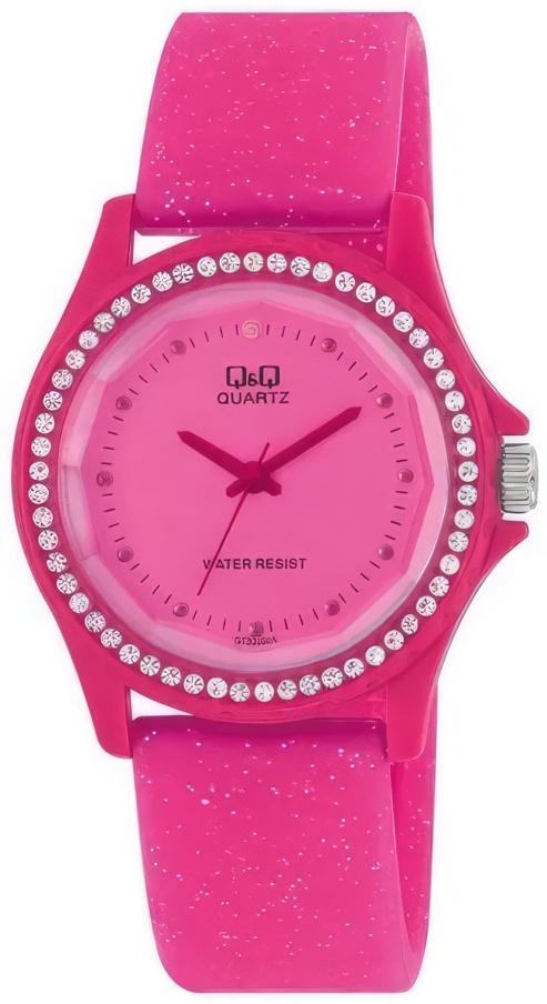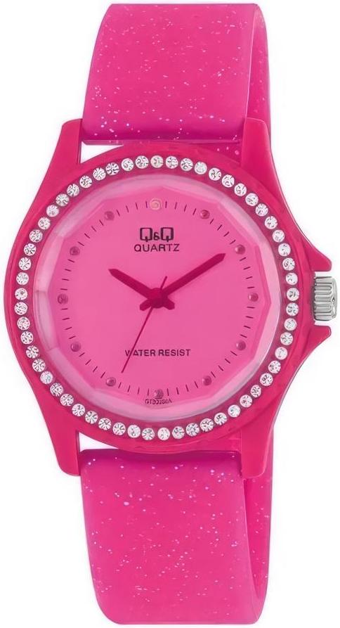 Точный кварцевый механизм. Центральная секундная стрелка. • Точность хода не хуже -10 +15 сек./в месяц. • Минеральное стекло устойчивое к возникновению царапин. • Корпус из полимерных материалов. • Инкрустация искусственными кристаллами. • Водозащита до 3 АТМ. • Серый ремешок из полимерного материала. • Простая ремешковая застежка.