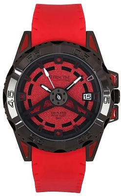 Точный кварцевый механизм. Центральная секундная стрелка. Окошко даты. • Точность хода не хуже -10 +15 сек./в месяц. • Светонакопительный состав на стрелках. • Минеральное стекло устойчивое к возникновению царапин. • Корпус из латуни со стойким PVD покрытием. • Красный каучуковый ремешок. • Водозащита до 5 АТМ. • Диаметр корпуса 45 мм, толщина 14 мм. Вес 65 гр.