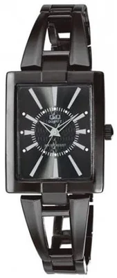 Женские наручные часы на изящном стальном браслете в большом прямоугольном корпусе.