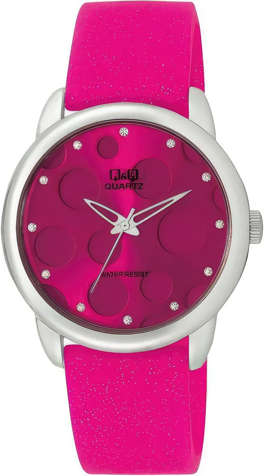 Точный кварцевый механизм Miyota калибр 2035. • Центральная часовая и минутная стрелки. Частота: 32,768Hz • Точность хода: не хуже +/-20 секунд в месяц. • Элемент питания SR626SW. • Срок службы батареи 3 года.• Минеральное стекло устойчивое к возникновению царапин. • Корпус из высококачественного стального сплава 316L с высокими антикоррозийными свойствами. • Розовый каучуковый ремешок. • Водозащита до 3 АТМ. • Диаметр корпуса 40 мм, толщина 9 мм. Вес 55 гр.
