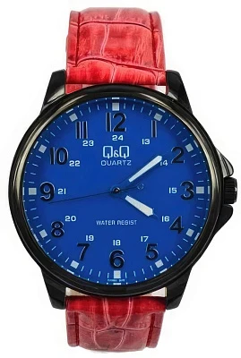 <b>Мужские наручные часы Q&Q  KW82J848Y.</b> Точный кварцевый механизм с аналоговой индикацией. Корпус изготовлен из высококачественной часовой латуни с высокими антикоррозийными свойствами. Ремешок изготовлен из кожи. Прочное, устойчивое к царапинам минеральное стекло защищает часы от повреждений.Часы являются водонепроницаемыми до 3 Бар. Цвет корпуса: Черный. Цвет циферблата: Синий. Ширина (с заводной головкой): 47мм. Гарантия: 1 год.