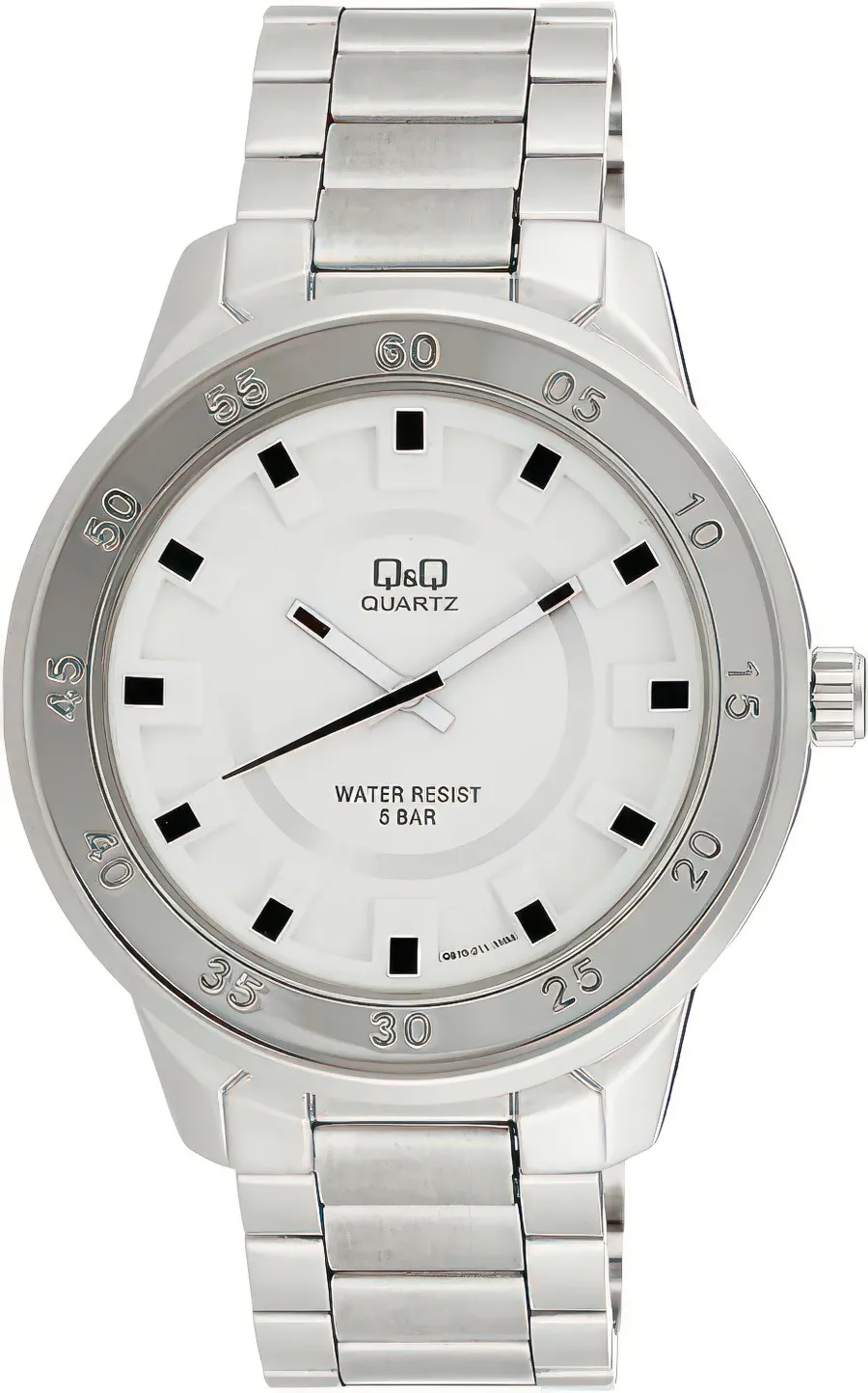 <b>Мужские наручные часы Q&Q Q870J211Y.</b> Точный кварцевый механизм с аналоговой индикацией. Корпус изготовлен из высококачественной часовой латуни с высокими антикоррозийными свойствами. Браслет из нержавеющей стали. Прочное, устойчивое к царапинам минеральное стекло защищает часы от повреждений.Часы являются водонепроницаемыми до 5 Бар. Цвет циферблата: Серебристый. Ширина (с заводной головкой): 40мм. Гарантия: 1 год.