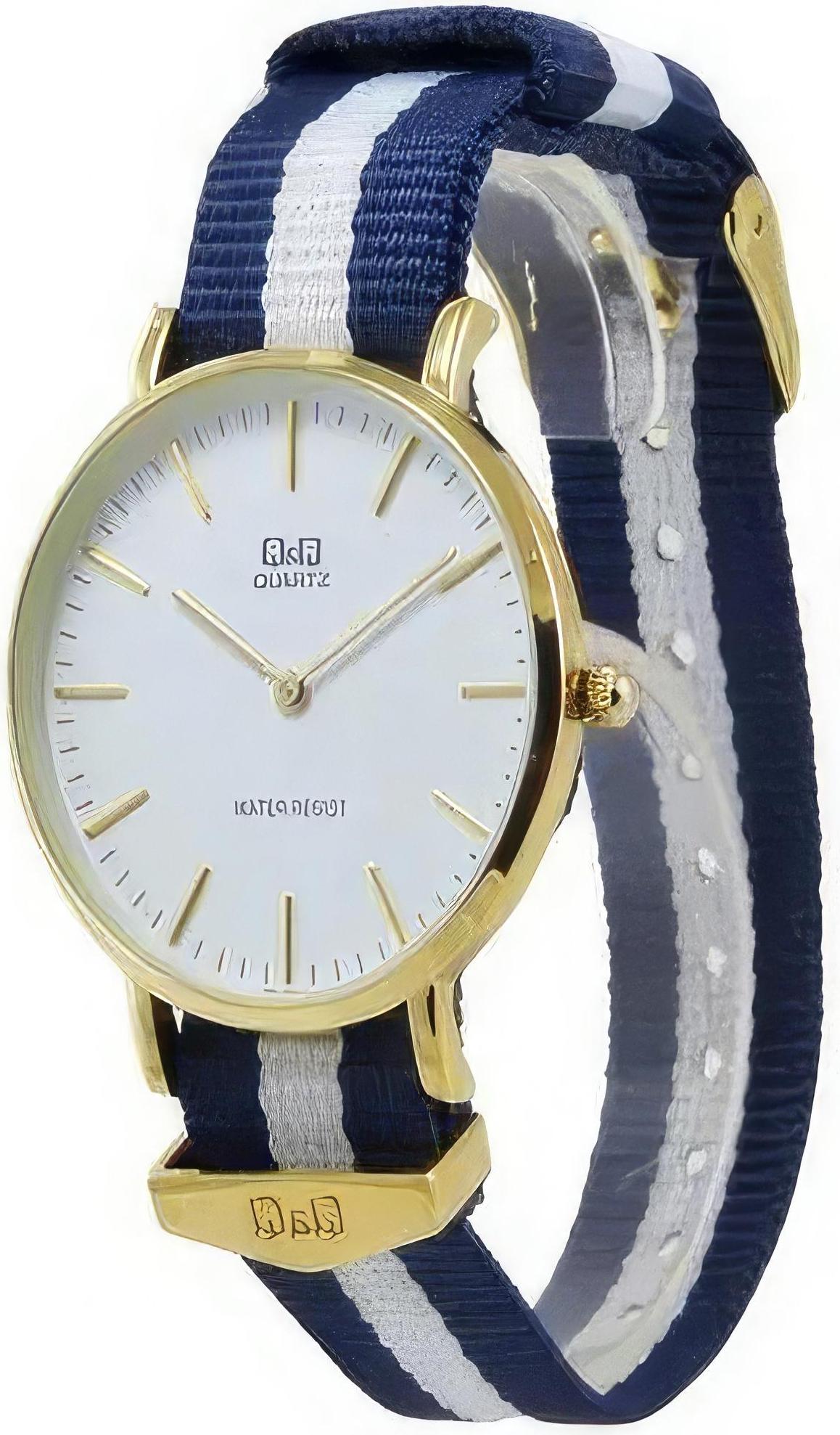 Мужские наручные часы Q&Q Q974J803Y. Точный кварцевый механизм с аналоговой индикацией. Корпус изготовлен из высококачественной часовой латуни с высокими антикоррозийными свойствами. Текстильный ремешок. Прочное, устойчивое к царапинам минеральное стекло защищает часы от повреждений.Часы являются водонепроницаемыми до 3 Бар. Цвет корпуса: Желтое золото. Цвет циферблата: Голубой. Ширина (с заводной головкой): 39мм. Гарантия: 1 год.