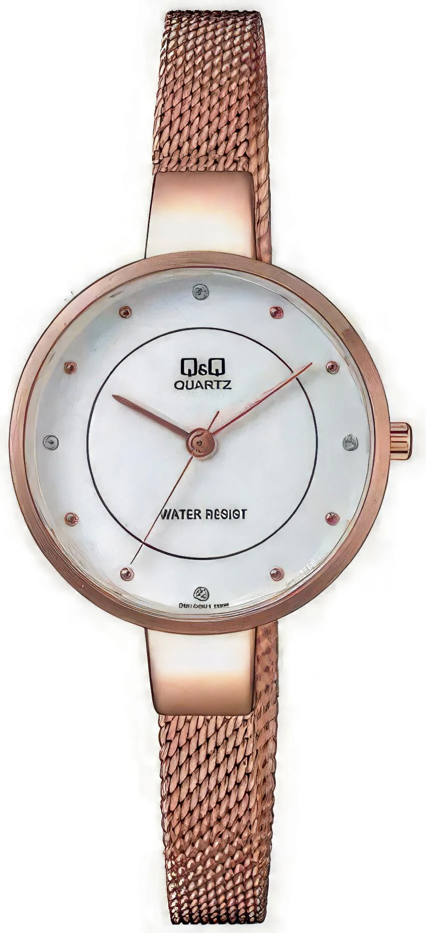 Женские наручные часы Q&Q QA17J011Y. Точный кварцевый механизм с аналоговой индикацией. Корпус изготовлен из высококачественной часовой латуни с высокими антикоррозийными свойствами. Браслет из нержавеющей стали. Прочное, устойчивое к царапинам минеральное стекло защищает часы от повреждений.Часы являются водонепроницаемыми до 3 Бар. Цвет корпуса: Розовое золото. Цвет циферблата: Белый. Ширина (с заводной головкой): 30мм. Гарантия: 1 год.