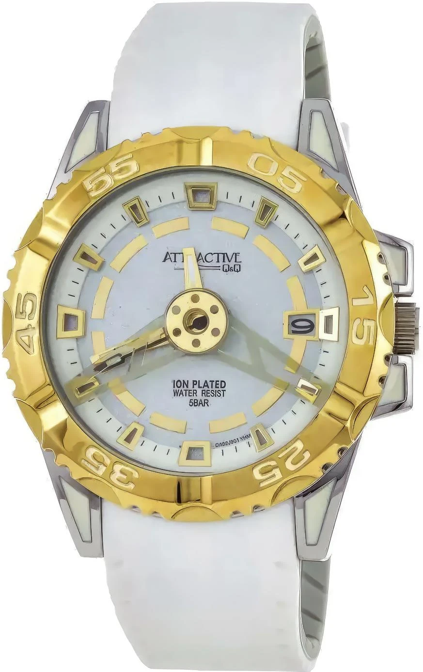 Мужские наручные часы Q&Q DA52J501Y. Точный кварцевый механизм с аналоговой индикацией. Корпус изготовлен из высококачественной часовой латуни с высокими антикоррозийными свойствами. Полимерный ремешок. Натуральный полимерный материал является идеальным для изготовления ремешка благодаря своей чрезвычайной прочности и гибкости. Прочное, устойчивое к царапинам минеральное стекло защищает часы от повреждений.Часы являются водонепроницаемыми до 5 Бар. Цвет корпуса: Белый. Ширина (с заводной головкой): 45мм. Гарантия: 1 год.