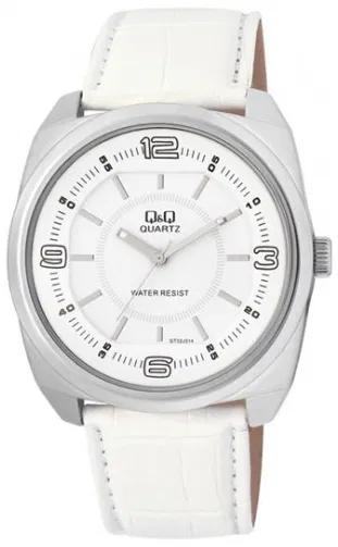 <b>Мужские наручные часы Q&Q GT32J314Y.</b> Точный кварцевый механизм с аналоговой индикацией. Корпус изготовлен из высококачественной нержавеющей стали 316L с высокими антикоррозийными свойствами. Ремешок изготовлен из кожи. Прочное, устойчивое к царапинам минеральное стекло защищает часы от повреждений. Часы являются водонепроницаемыми до 3 Бар. Цвет корпуса: Белый. Цвет циферблата: Белый. Ширина (с заводной головкой): 42мм. Гарантия: 1 год.