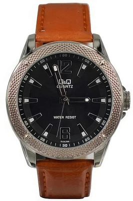 <b>Мужские наручные часы Q&Q  GU34J806Y.</b> Точный кварцевый механизм с аналоговой индикацией. Корпус изготовлен из высококачественной часовой латуни с высокими антикоррозийными свойствами. Ремешок изготовлен из кожи. Прочное, устойчивое к царапинам минеральное стекло защищает часы от повреждений.Часы являются водонепроницаемыми до 3 Бар. Цвет циферблата: Черный. Ширина (с заводной головкой): 42мм. Гарантия: 1 год.