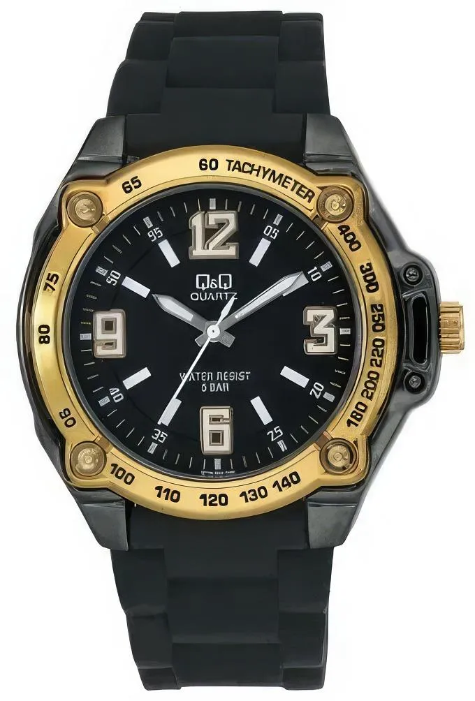 Мужские наручные часы Q&Q  Q776J545Y. Точный кварцевый механизм с аналоговой индикацией. Корпус изготовлен из высококачественной часовой латуни с высокими антикоррозийными свойствами. Полимерный ремешок. Натуральный полимерный материал является идеальным для изготовления ремешка благодаря своей чрезвычайной прочности и гибкости. Прочное, устойчивое к царапинам минеральное стекло защищает часы от повреждений.Часы являются водонепроницаемыми до 5 Бар. Цвет корпуса: Черный. Цвет циферблата: Черный. Ширина (с заводной головкой): 35мм. Гарантия: 1 год.