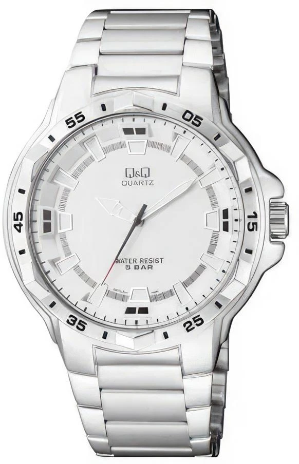 <b>Мужские наручные часы Q&Q Q970J201Y.</b> Точный кварцевый механизм с аналоговой индикацией. Корпус изготовлен из высококачественной часовой латуни с высокими антикоррозийными свойствами. Браслет из нержавеющей стали. Прочное, устойчивое к царапинам минеральное стекло защищает часы от повреждений.Часы являются водонепроницаемыми до 5 Бар. Ширина (с заводной головкой): 30мм. Гарантия: 1 год.