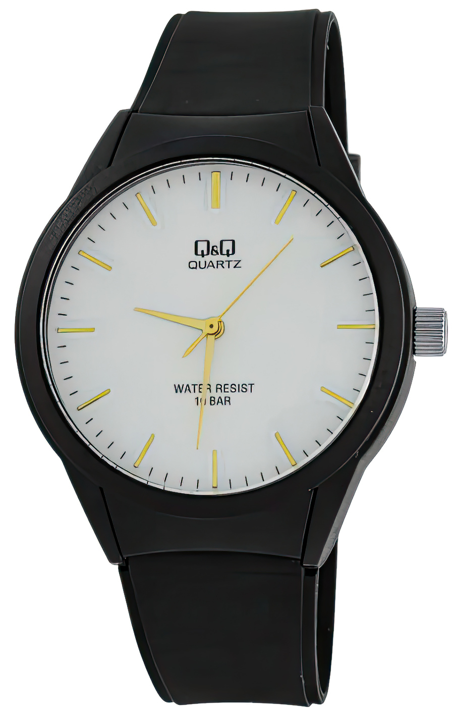 <b>Мужские наручные часы Q&Q VR28J003Y.</b> Точный кварцевый механизм с аналоговой индикацией. Полимерный корпус надежно защищает часы от механических повреждений. Полимерный ремешок. Натуральный полимерный материал является идеальным для изготовления ремешка благодаря своей чрезвычайной прочности и гибкости. Прочное, устойчивое к царапинам минеральное стекло защищает часы от повреждений.Часы являются водонепроницаемыми до 10 Бар. Цвет корпуса: Черный. Цвет циферблата: Белый. Ширина (с заводной головкой): 33мм. Гарантия: 1 год.