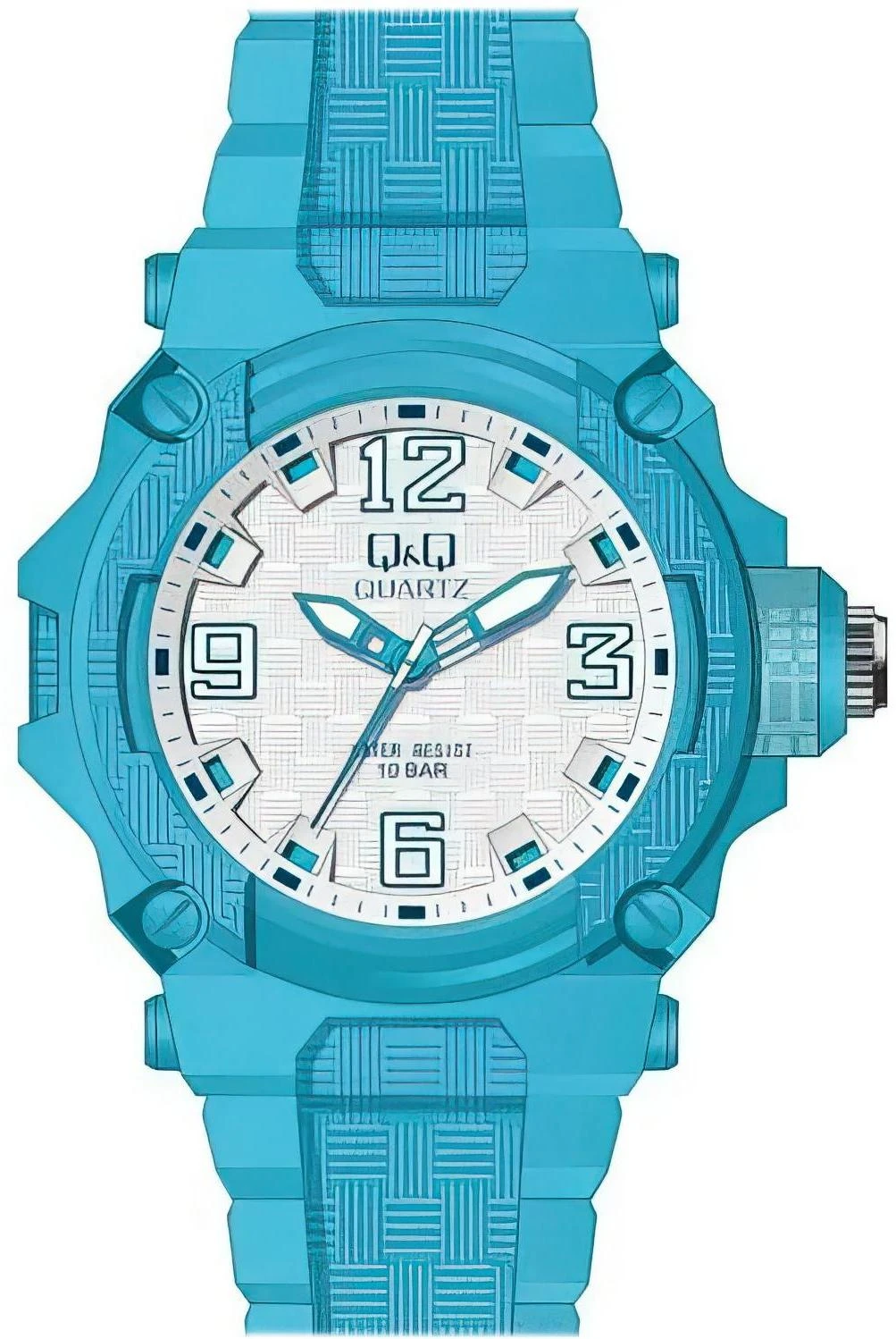 <b>Мужские наручные часы Q&Q VR56J010Y.</b> Точный кварцевый механизм с аналоговой индикацией. Полимерный корпус надежно защищает часы от механических повреждений. Полимерный ремешок. Натуральный полимерный материал является идеальным для изготовления ремешка благодаря своей чрезвычайной прочности и гибкости. Прочное, устойчивое к царапинам минеральное стекло защищает часы от повреждений.Часы являются водонепроницаемыми до 10 Бар. Цвет корпуса: Голубой. Цвет циферблата: Серый. Ширина (с заводной головкой): 41мм. Гарантия: 1 год.