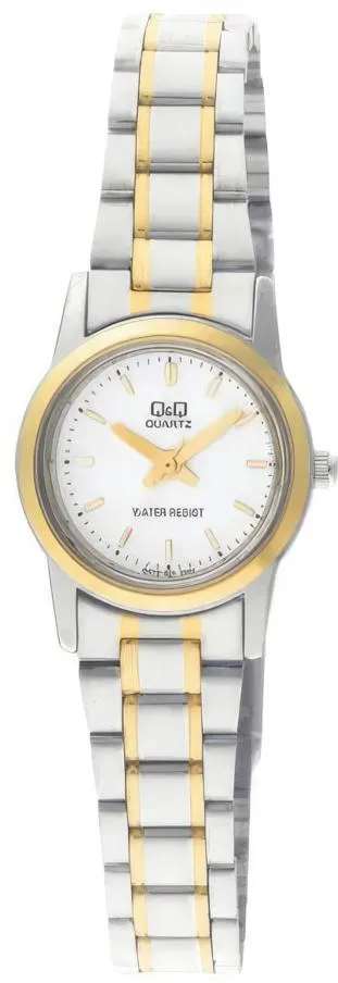 <b>Женские наручные часы Q&Q Q415J401Y.</b> Точный кварцевый механизм с аналоговой индикацией. Корпус изготовлен из высококачественной часовой латуни с высокими антикоррозийными свойствами. Браслет из нержавеющей стали. Прочное, устойчивое к царапинам минеральное стекло защищает часы от повреждений.Часы являются водонепроницаемыми до 5 Бар. Цвет корпуса: Двухцветный. Цвет циферблата: Белый. Гарантия: 1 год.