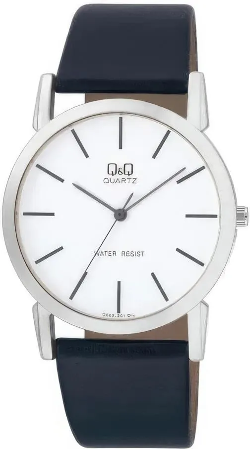 Точный кварцевый механизм. Центральная секундная стрелка. • Точность хода не хуже -10 +15 сек./в месяц. • Минеральное стекло устойчивое к возникновению царапин. • Латунный корпус со стойким PVD покрытием. • Водозащита до 3 АТМ. • Черный кожаный ремешок. • Простая ремешковая застежка. • Диаметр 38 мм, толщина 7 мм.