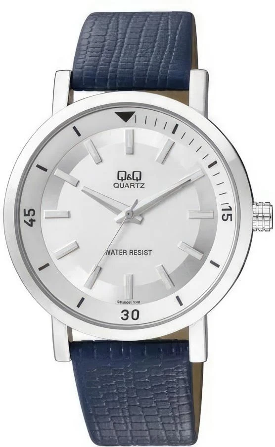 Точный кварцевый механизм. Центральная секундная стрелка. • Точность хода не хуже -10 +15 сек./в месяц. • Минеральное стекло устойчивое к возникновению царапин. • Корпус из латуни со стойким PVD покрытием. • Синий кожаный ремешок. • Водозащита до 3 АТМ. • Диаметр корпуса 42 мм, толщина 10 мм.