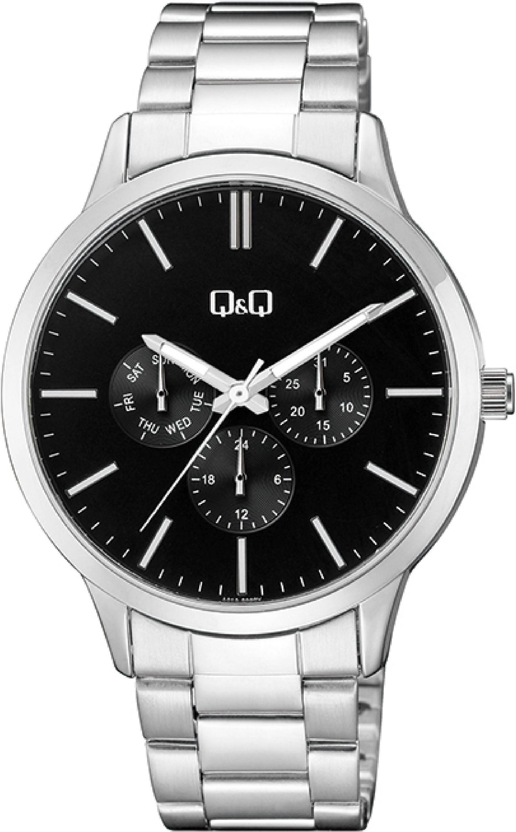 Мужские наручные часы Q&Q Casual A01AJ003Y. Точный кварцевый механизм с аналоговой индикацией. Браслет из нержавеющей стали. Отображение времени возможно в 12-часовом или 24-часовом формате. Латунный браслет. Прочное, устойчивое к царапинам минеральное стекло защищает часы от повреждений. На циферблате отображается текущее число месяца и день недели. Часы являются водонепроницаемыми до 5 Бар. Цвет циферблата: Серебристый. Цвет корпуса: Черный. На стрелки и отметки нанесен светонакопительный состав, благодаря этому считывать информацию с циферблата возможно и в темноте. Толщина: 10 мм. Гарантия: 1 год.