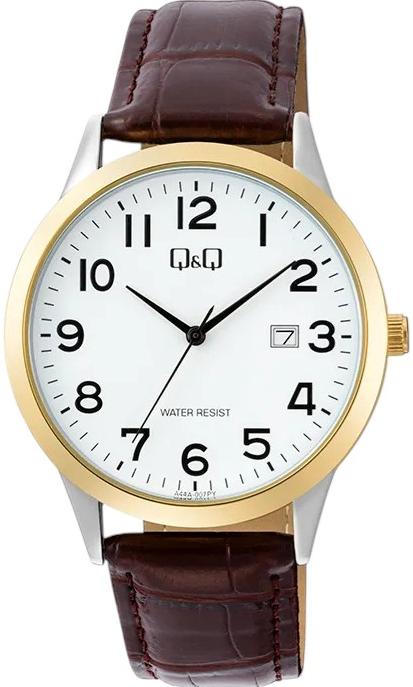 Мужские наручные часы Q&Q Casual A44AJ007Y. Точный кварцевый механизм с аналоговой индикацией. В отличие от механических часов, не требуют завода и работают от батареи, показывая отклонение всего несколько секунд в месяц. Ремешок изготовлен из кожи. Гибкость такого ремешка позволяет точно регулировать посадку часов на руке. Корпус изготовлен из высококачественной часовой латуни с высокими антикоррозийными свойствами. Прочное, устойчивое к царапинам минеральное стекло защищает часы от повреждений. Часы являются водонепроницаемыми до 3 Бар. Цвет корпуса: Серебристый. Цвет циферблата: Белый. Высота (с ушками): 40 мм. Толщина: 9.5 мм. Гарантия: 1 год.