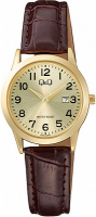 Женские наручные часы Q&Q Casual A45AJ006Y. Точный кварцевый механизм с аналоговой индикацией. В отличие от механических часов, не требуют завода и работают от батареи, показывая отклонение всего несколько секунд в месяц. Ремешок изготовлен из кожи. Гибкость такого ремешка позволяет точно регулировать посадку часов на руке. Корпус изготовлен из высококачественной часовой латуни с высокими антикоррозийными свойствами. Прочное, устойчивое к царапинам минеральное стекло защищает часы от повреждений. Часы являются водонепроницаемыми до 3 Бар. Цвет корпуса: Желтое золото. Цвет циферблата: Золотистый. Высота (с ушками): 30 мм. Толщина: 9 мм. Гарантия: 1 год.