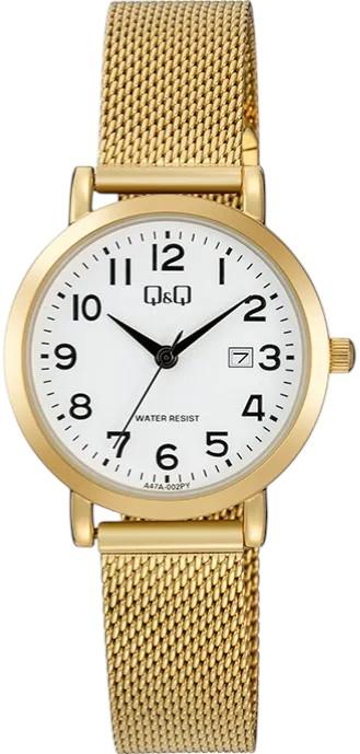 Женские наручные часы Q&Q Casual A47AJ002Y. Точный кварцевый механизм с аналоговой индикацией. В отличие от механических часов, не требуют завода и работают от батареи, показывая отклонение всего несколько секунд в месяц. Браслет из нержавеющей стали обладает высокой прочностью и износостойкостью, обеспечивая долговечность даже при активной эксплуатации. Материал устойчив к коррозии и сохраняет свой внешний вид надолго. Корпус изготовлен из высококачественной часовой латуни с высокими антикоррозийными свойствами. Прочное, устойчивое к царапинам минеральное стекло защищает часы от повреждений. Часы являются водонепроницаемыми до 3 Бар. Цвет корпуса: Желтое золото. Цвет циферблата: Белый. Высота (с ушками): 31 мм. Толщина: 8 мм. Гарантия: 1 год.