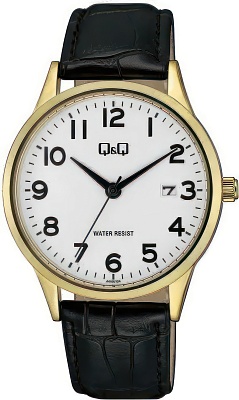 Мужские наручные часы Q&Q Casual A482J104Y. Точный кварцевый механизм с аналоговой индикацией. Корпус изготовлен из высококачественной часовой латуни с высокими антикоррозийными свойствами. На циферблате отображается текущее число месяца. Ремешок изготовлен из кожи. Прочное, устойчивое к царапинам минеральное стекло защищает часы от повреждений.Часы являются водонепроницаемыми до 3 Бар. Цвет корпуса: Желтое золото. Цвет циферблата: Белый. Гарантия: 1 год.