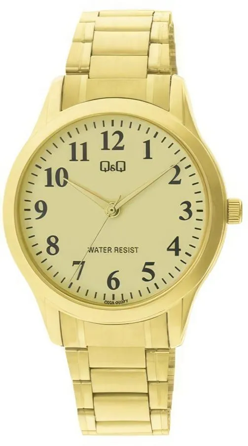 Женские наручные часы Q&Q Casual C02AJ003Y. Точный кварцевый механизм с аналоговой индикацией. Браслет из нержавеющей стали. Браслет из нержавеющей стали. Прочное, устойчивое к царапинам минеральное стекло защищает часы от повреждений. Часы являются водонепроницаемыми до 3 Бар. Цвет циферблата: Желтое золото. Цвет корпуса: Золотистый. Толщина: 8 мм. Гарантия: 1 год.