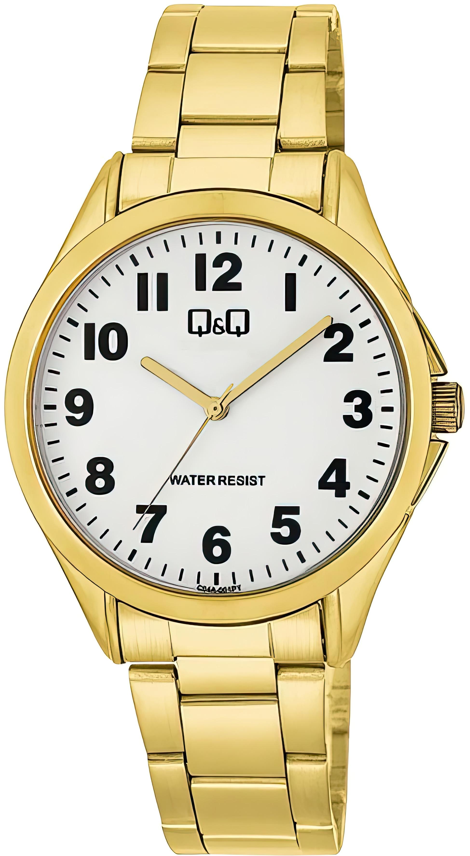 Женские наручные часы Q&Q Casual C04AJ001Y. Точный кварцевый механизм с аналоговой индикацией. Браслет из нержавеющей стали. Латунный браслет. Прочное, устойчивое к царапинам минеральное стекло защищает часы от повреждений. Часы являются водонепроницаемыми до 3 Бар. Цвет циферблата: Желтое золото. Цвет корпуса: Белый. Толщина: 8 мм. Гарантия: 1 год.