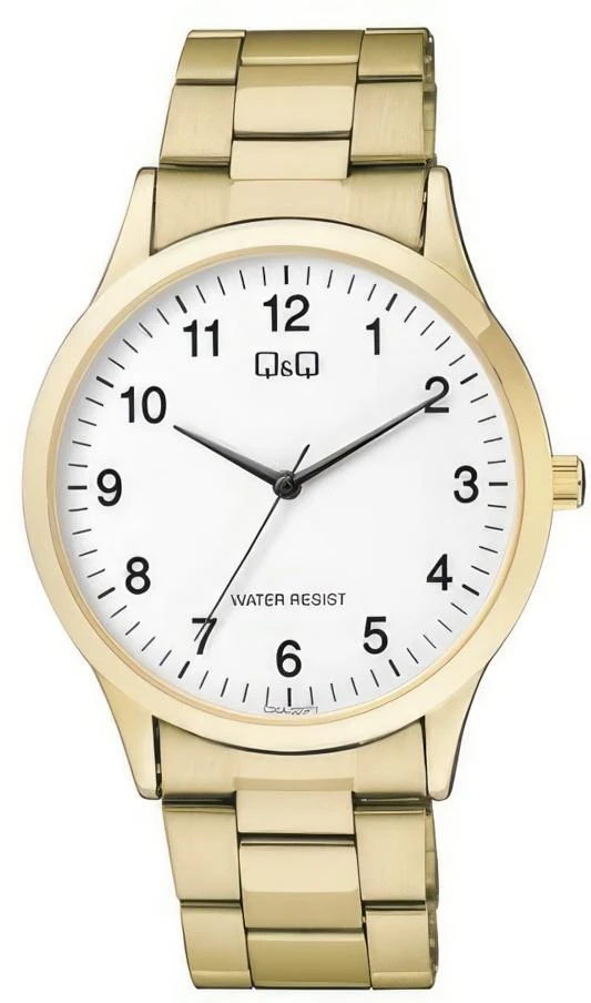 Мужские наручные часы Q&Q Casual C08AJ005Y. Точный кварцевый механизм с аналоговой индикацией. Браслет из нержавеющей стали. Браслет из нержавеющей стали. Прочное, устойчивое к царапинам минеральное стекло защищает часы от повреждений. Часы являются водонепроницаемыми до 3 Бар. Цвет циферблата: Желтое золото. Цвет корпуса: Белый. Толщина: 7 мм. Гарантия: 1 год.
