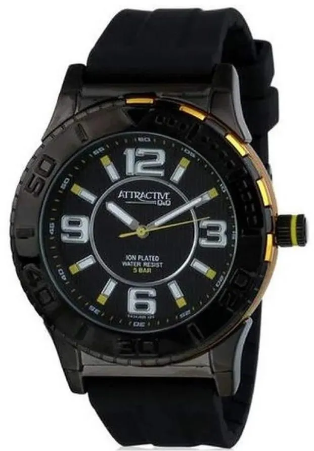 <b>Мужские наручные часы Q&Q DA34J525Y.</b> Точный кварцевый механизм с аналоговой индикацией. Корпус изготовлен из высококачественной нержавеющей стали 316L с высокими антикоррозийными свойствами. На стрелки и отметки нанесен светонакопительный состав, благодаря этому считывать информацию с циферблата возможно и в темноте. Полимерный ремешок. Натуральный полимерный материал является идеальным для изготовления ремешка благодаря своей чрезвычайной прочности и гибкости. Прочное, устойчивое к царапинам минеральное стекло защищает часы от повреждений. Часы являются водонепроницаемыми до 5 Бар. Цвет корпуса: Серый. Цвет циферблата: Черный. Ширина (с заводной головкой): 43мм. Толщина: 11мм. Гарантия: 1 год.