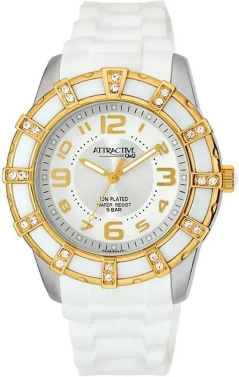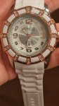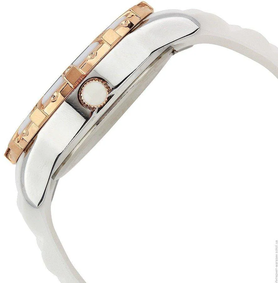 Точный кварцевый механизм. Центральная секундная стрелка. • Точность хода не хуже -10 +15 сек./в месяц. • Светонакопительный состав на стрелках. • Минеральное стекло устойчивое к возникновению царапин. • Корпус из латуни со стойким PVD покрытием. • Инкрустация искусственными кристаллами. • Белый каучуковый ремешок. • Водозащита до 5 АТМ. • Диаметр корпуса 44 мм, толщина 13 мм. Вес 55 гр.
