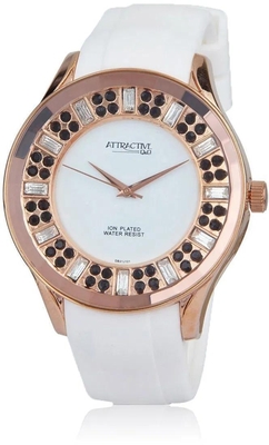 <b>Женские наручные часы Q&Q DB31J101Y.</b> Точный кварцевый механизм с аналоговой индикацией. Корпус изготовлен из высококачественной часовой латуни с высокими антикоррозийными свойствами. Ремешок изготовлен из каучука. Прочное, устойчивое к царапинам минеральное стекло защищает часы от повреждений.Часы являются водонепроницаемыми до 3 Бар. Цвет корпуса: Розовое золото. Цвет циферблата: Белый. Ширина (с заводной головкой): 42мм. Толщина: 9мм. Гарантия: 1 год.