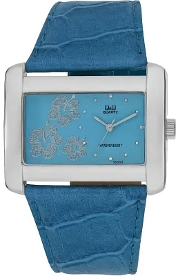 <b>Женские наручные часы Q&Q GS53J352Y.</b> Точный кварцевый механизм с аналоговой индикацией. Корпус изготовлен из высококачественной часовой латуни с высокими антикоррозийными свойствами. Ремешок изготовлен из кожи. Прочное, устойчивое к царапинам минеральное стекло защищает часы от повреждений.Часы являются водонепроницаемыми до 3 Бар. Цвет циферблата: Голубой. Ширина (с заводной головкой): 44мм. Толщина: 9мм. Гарантия: 1 год.