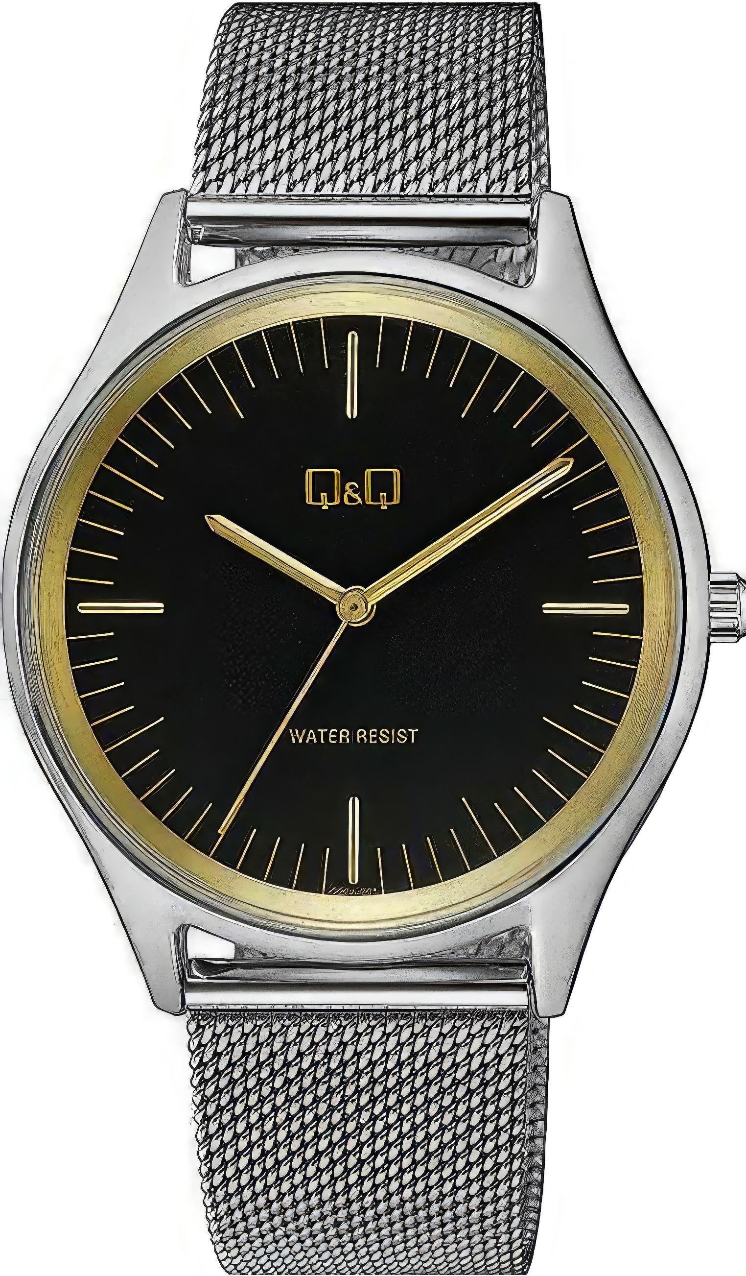 Мужские наручные часы Q&Q Casual Q00AJ001Y. Точный кварцевый механизм с аналоговой индикацией. Браслет из нержавеющей стали. Латунный браслет. Прочное, устойчивое к царапинам минеральное стекло защищает часы от повреждений. Часы являются водонепроницаемыми до 3 Бар. Цвет циферблата: Серебристый. Цвет циферблата: Розовое золото. Цвет корпуса: Черный. Толщина: 8 мм. Гарантия: 1 год.